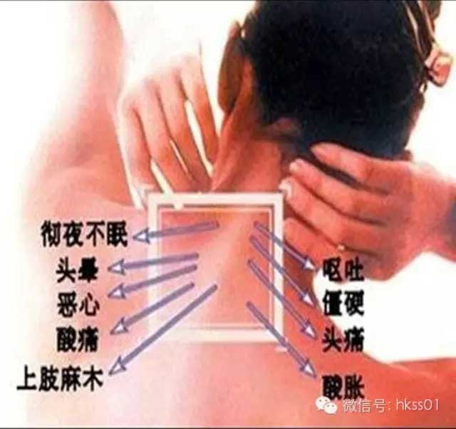 手按上去后就會有痛,酸漲的現象(肌肉硬是勞損,骨頭痛是增生),肩胛骨縫痛、經常四肢發麻,手腳冰涼、做事韌性差,易在短時間出現疲勞現象。
