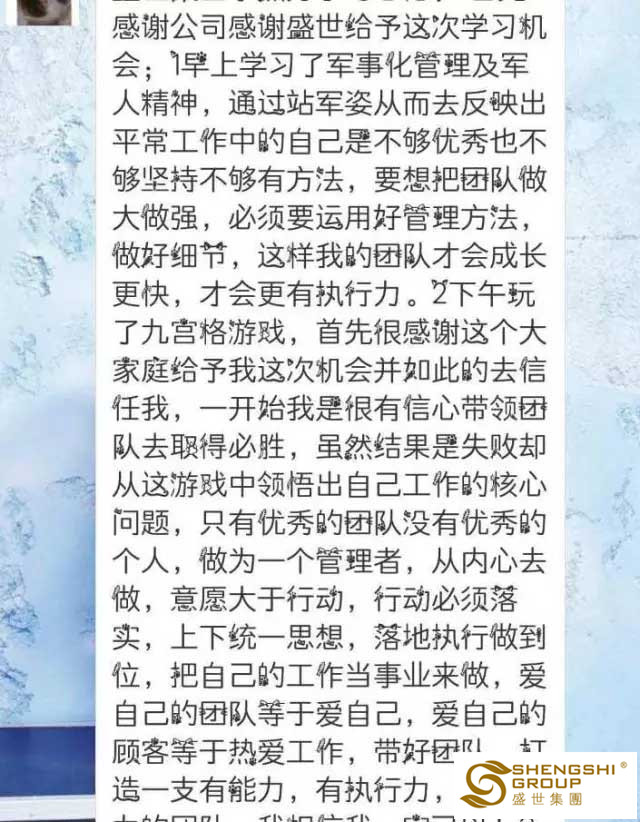 回歸初衷,感恩一切的正能量,感恩領(lǐng)導(dǎo)的關(guān)愛和鼓勵(lì),感恩老板給予的平臺(tái)。傳遞愛與奉獻(xiàn),學(xué)會(huì)感恩,學(xué)會(huì)敢于擔(dān)當(dāng)責(zé)任,這就是盛世商學(xué)院【贏定人生密訓(xùn)營(yíng)】。